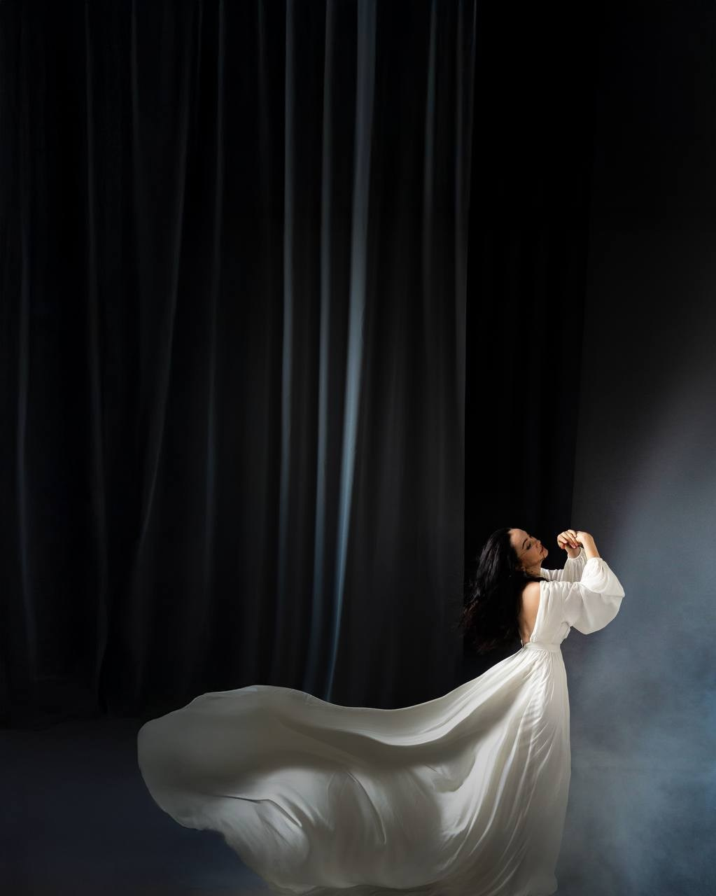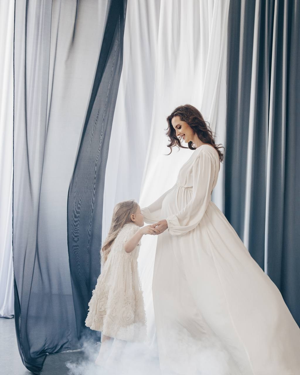 Универсальный зал с летящими тканями. Подходит как для нежной беременной съемки, так и для женского или бизнес портрета. Запись по телефону +79 661 370 898